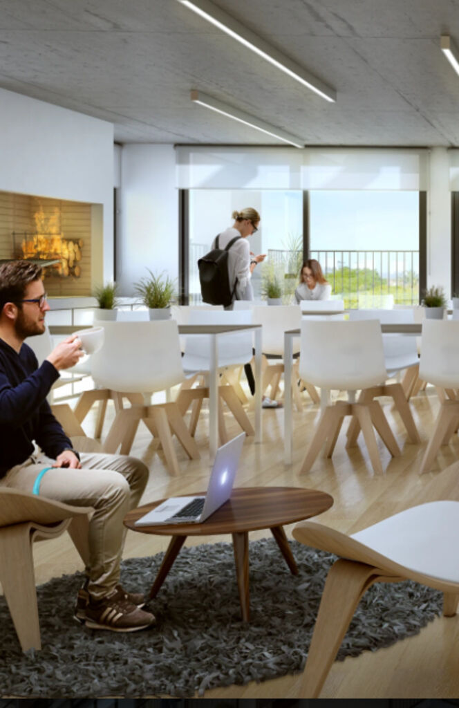 El edificio se desarrolla con un concepto moderno y ofrece una amplia variedad de amenities: