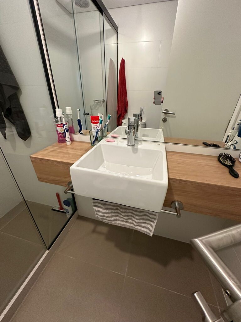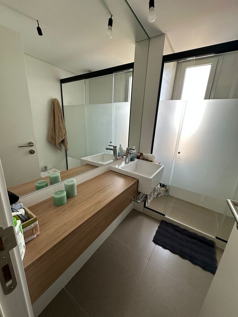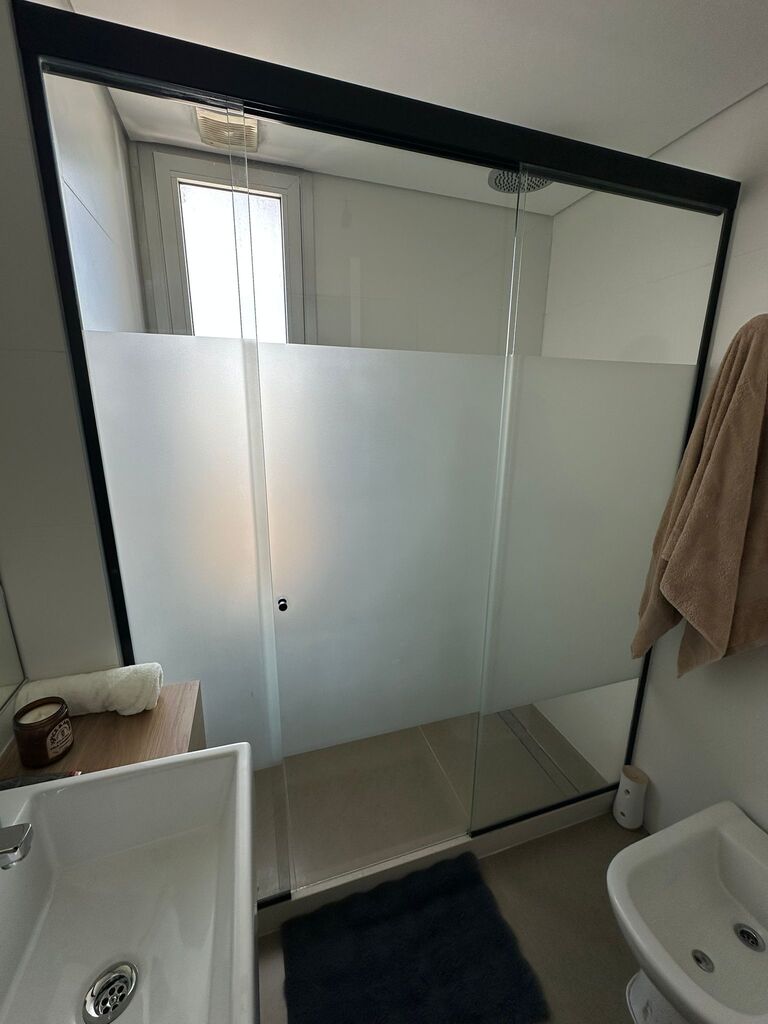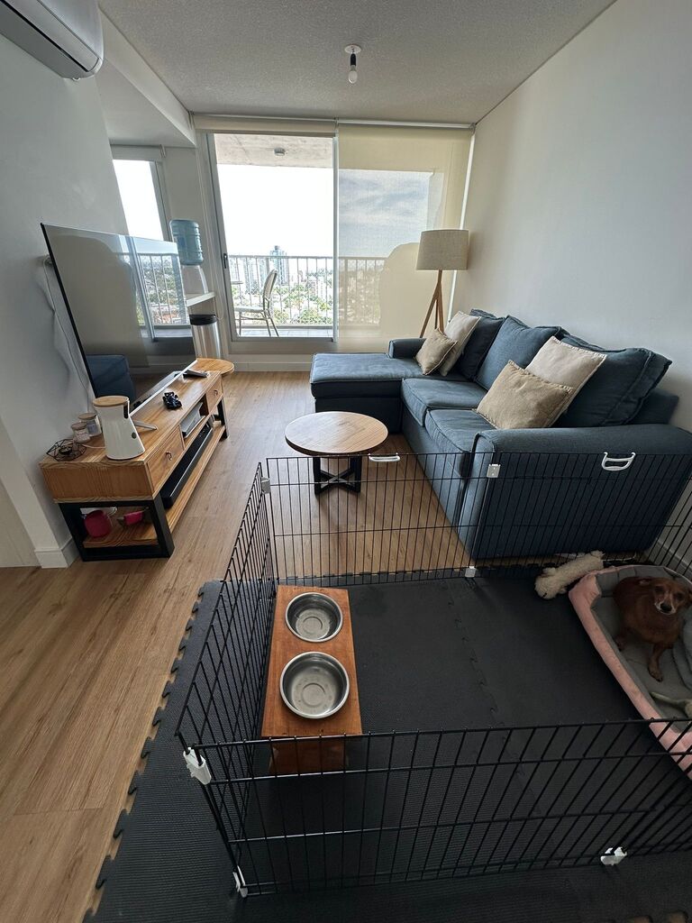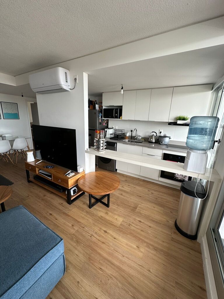 Posee dos baños completos con mampara, cocina equipada con anafe, horno, extractor y ventanales con blackout, y un living amplio y luminoso también con aire acondicionado, con ventanales con screen y blackout.