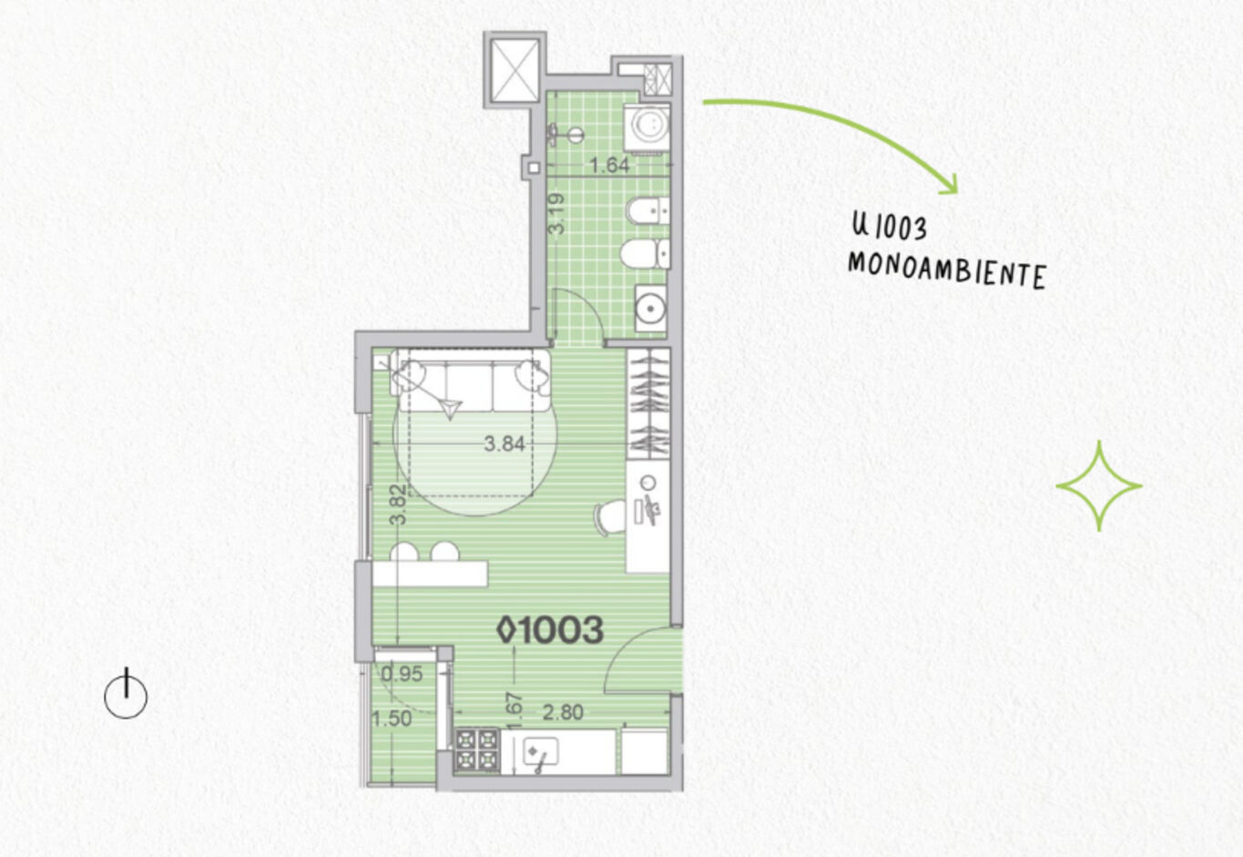 - Amplio ambiente principal con excelente iluminación, cocina integrada y baño completo.
