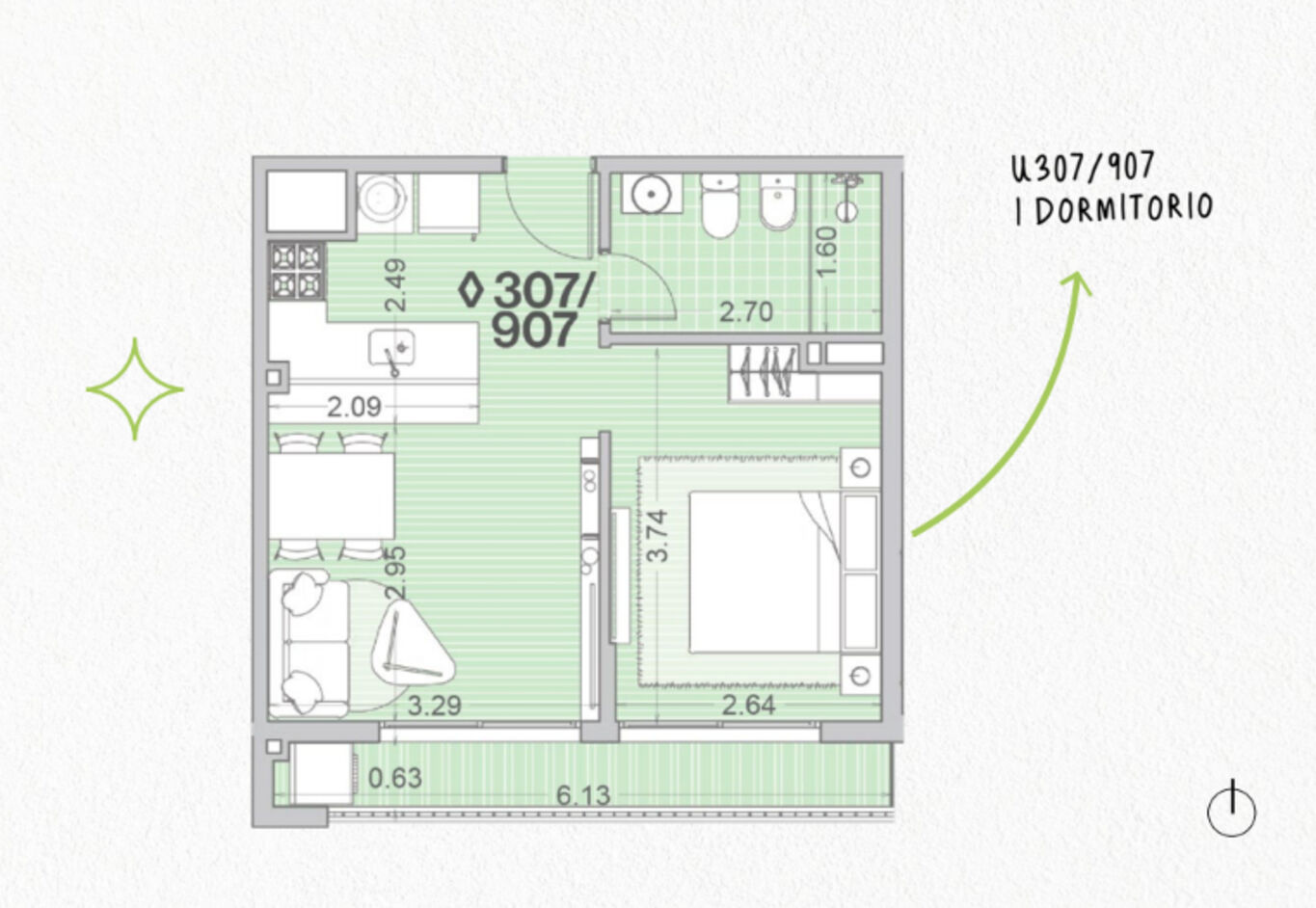 Un proyecto moderno pensado para quienes buscan confort, luminosidad y espacios al aire libre. Este apartamento de 1 dormitorio se destaca por su patio privado y terraza de 5 m², ideales para disfrutar del exterior con privacidad y estilo.