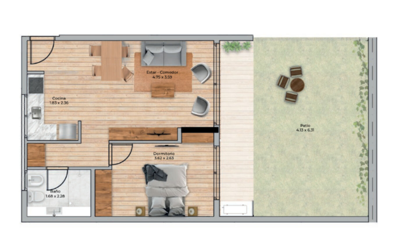 Cuenta con un living comedor con cocina integrada, un dormitorio bien definido, baño completo y salida a terraza, logrando un equilibrio ideal entre funcionalidad y confort. Forma parte de un edificio moderno con seguridad y espacios comunes cuidadosamente diseñados.