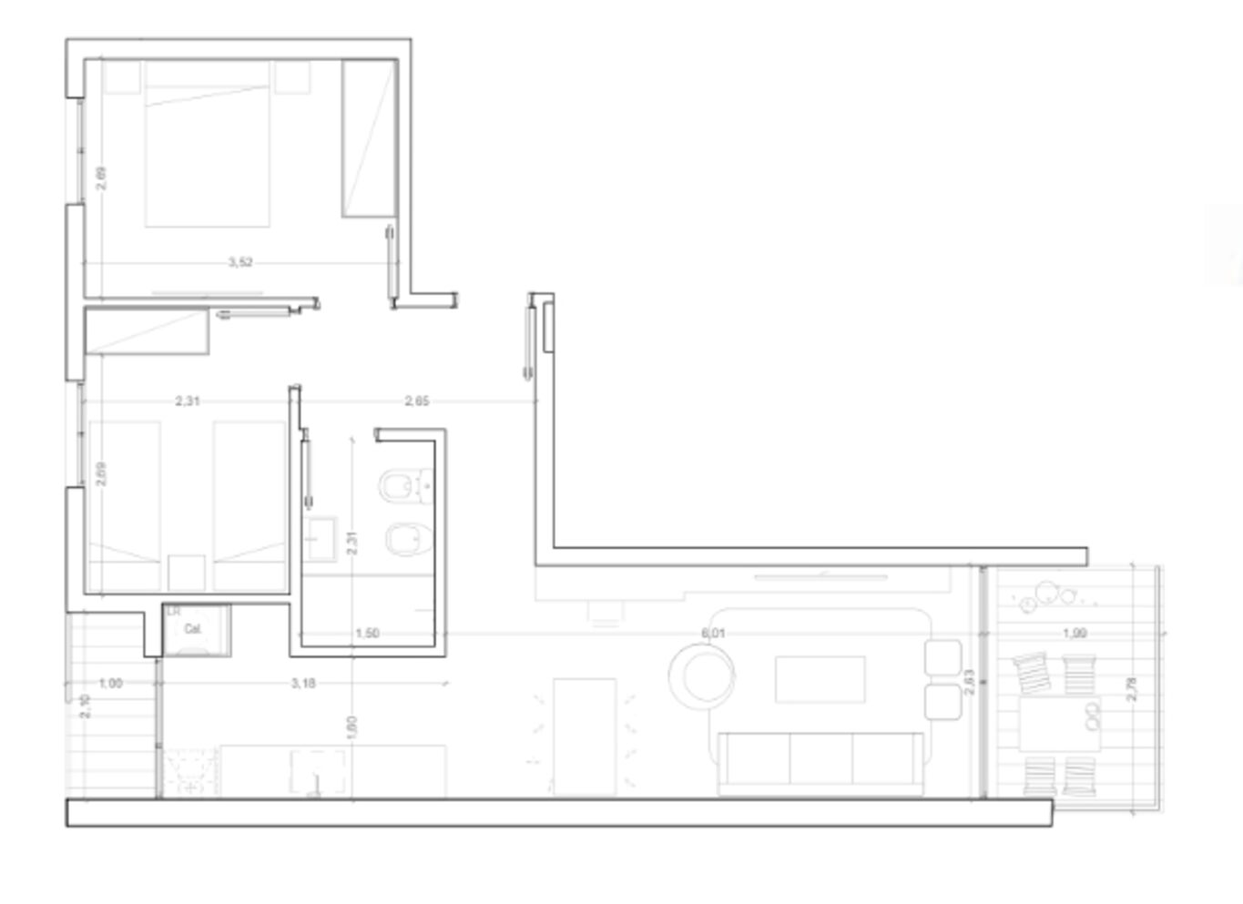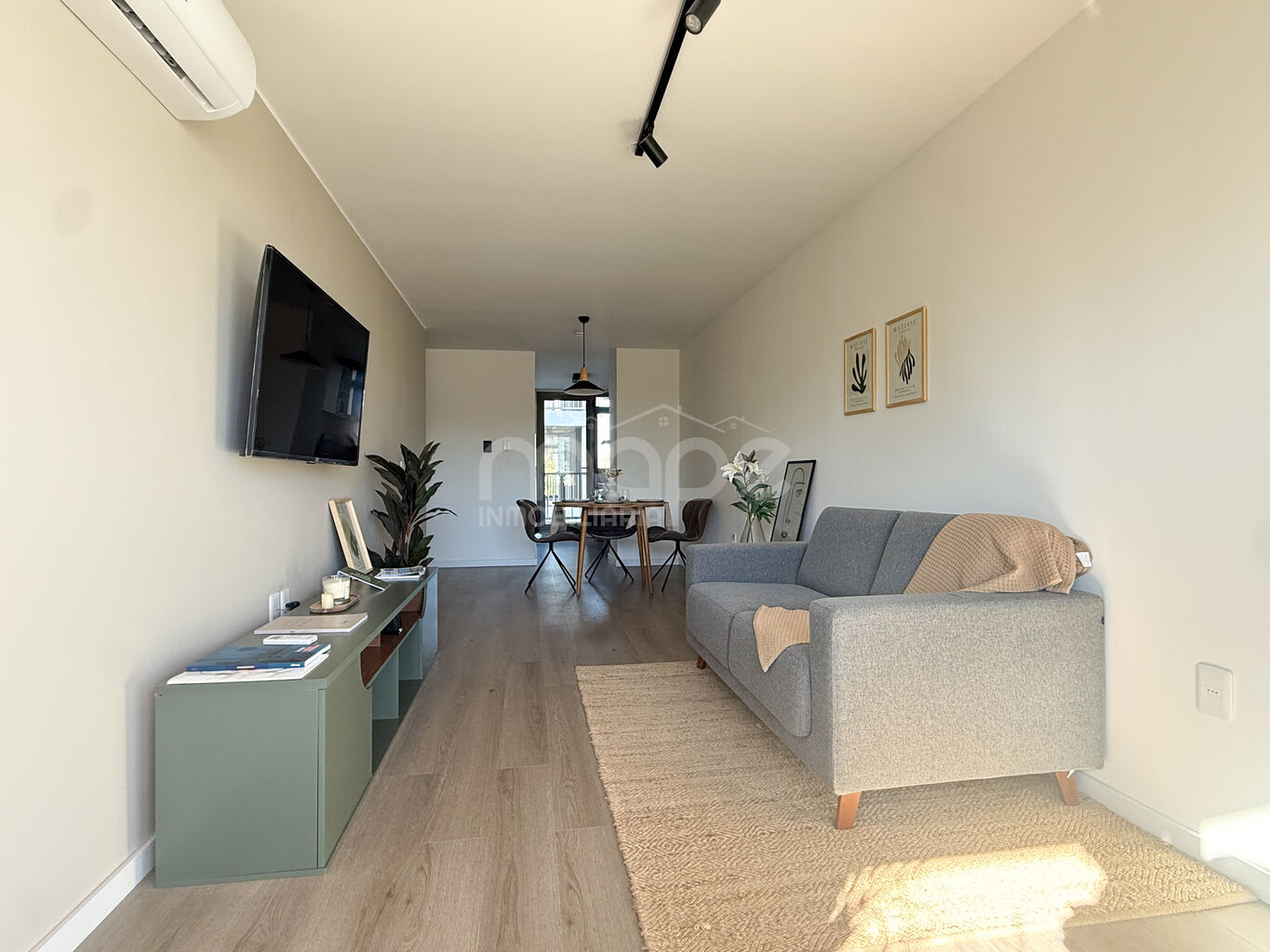 - 58,5 m2 totales propios, los cuales están divididos entre52,57 m2 internos, un balcón de 5,93 m2.