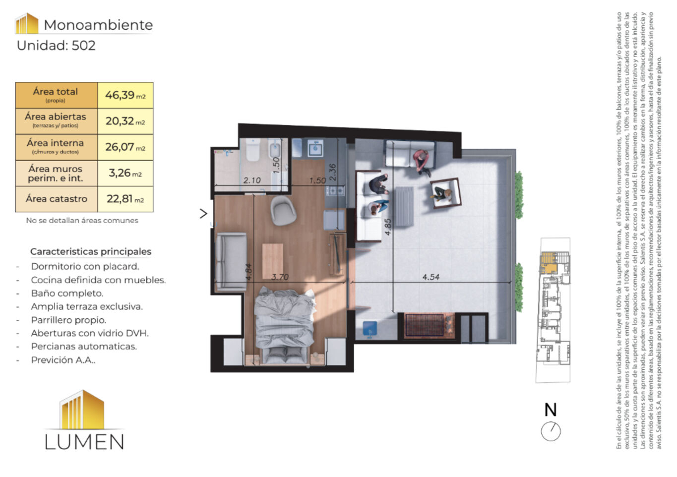 m² internos: 26,07